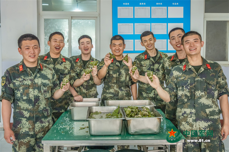戰(zhàn)士們一起認(rèn)真包粽子。王良 攝
