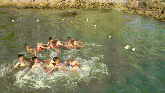 官兵們不忘進行游泳訓練