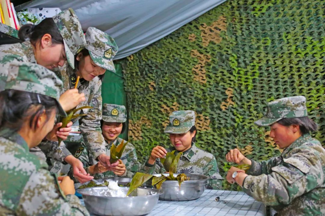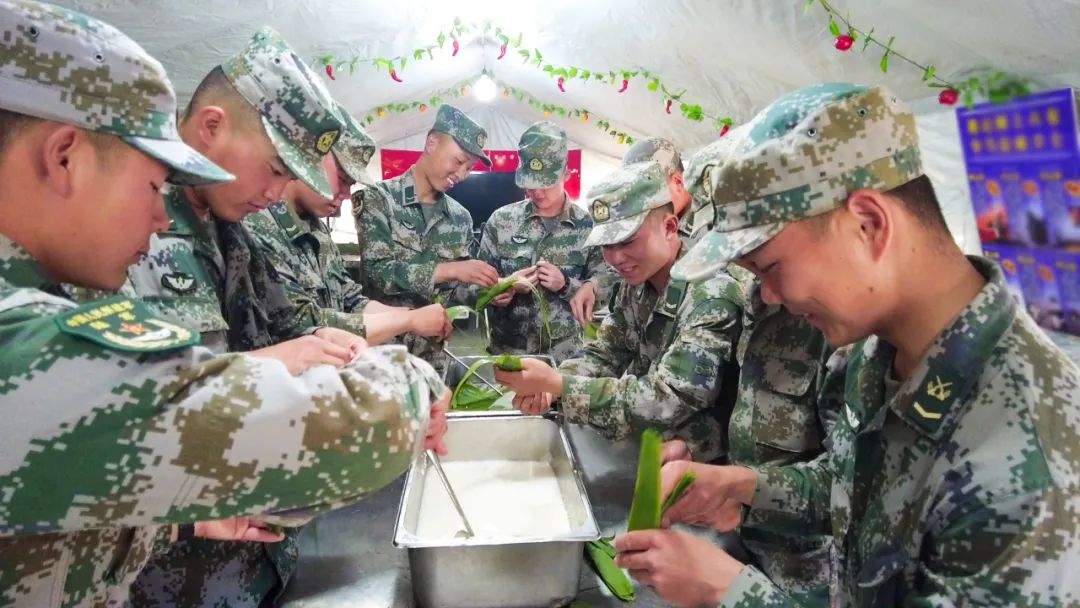 來自天南海北的官兵一起包粽子