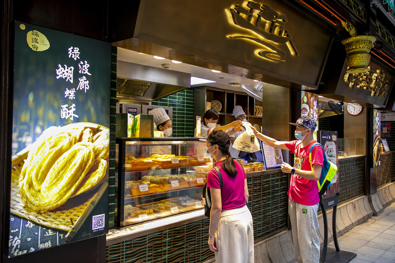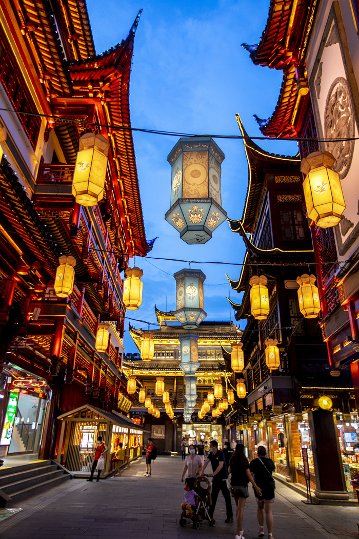 6月4日,豫園商場吸引游客觀光游覽。據(jù)悉,豫園商城嚴(yán)格實行預(yù)約制入園,園內(nèi)限流人數(shù)瞬時不超過5000人次。(光明圖片/視覺中國)