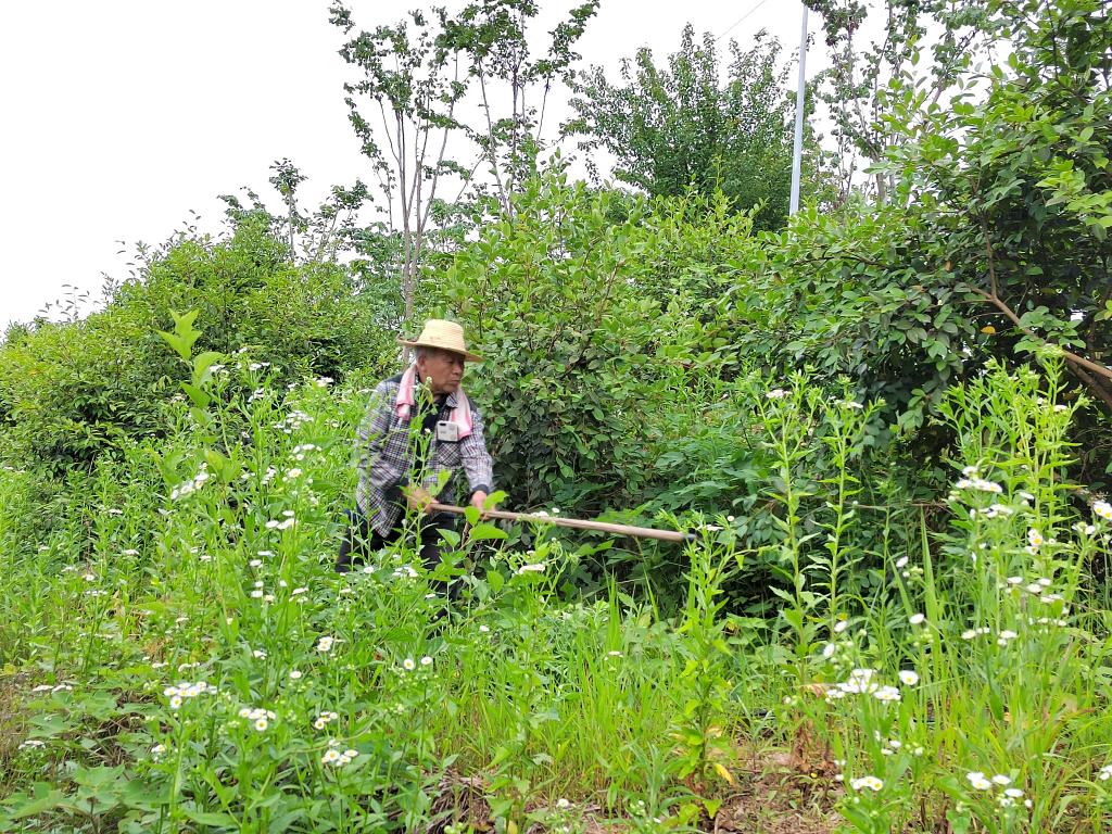 黃友德在司馬光油茶園里除草。新華社記者劉金輝攝