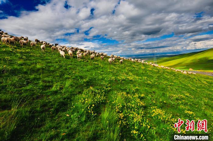 圖為天峻縣境內的草場上羊群在奔跑。 天峻縣委宣傳部 供圖