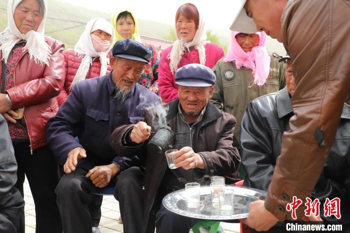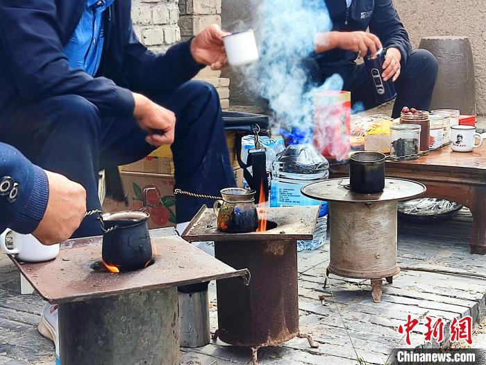村民品鑒罐罐茶(資料圖)。 隆德縣委宣傳部供圖