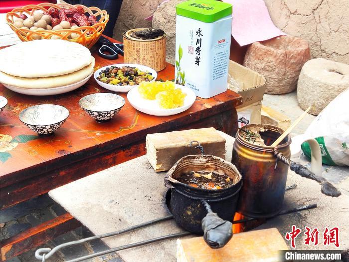 村民現(xiàn)場熬制的罐罐茶?!∫κ媪?攝