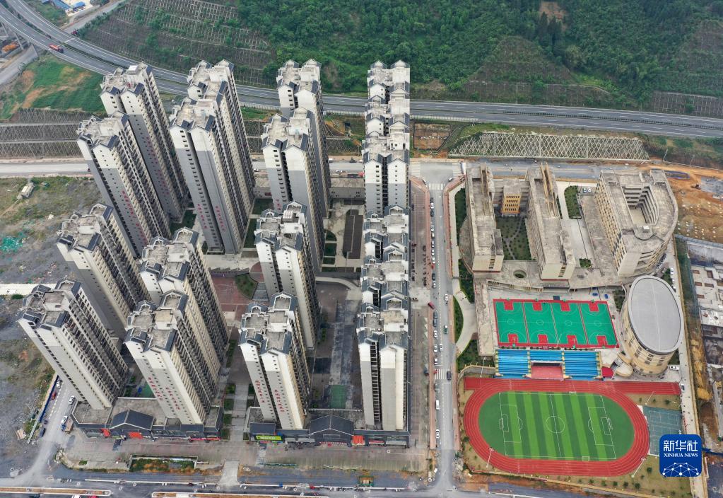 這是廣西東蘭縣易地扶貧搬遷安置新區(qū)向陽新城(5月6日攝,無人機(jī)照片)。