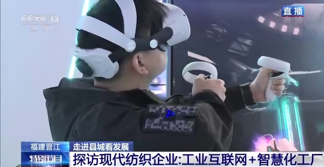 第三個關鍵詞就是創(chuàng)新引領。記者旁邊有一位正在體驗VR游戲的體驗者,他可以通過衣服和鞋子的震動來增強游戲的體驗感與互動感。比如在玩射擊類的游戲時,被擊中的部位會發(fā)生震動。類似的創(chuàng)新在晉江的紡織行業(yè)非常多。