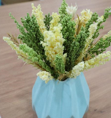 藜麥干花制成的掛飾、胸花、伴手禮等深受消費(fèi)者歡迎,在花卉市場銷售火爆。截至目前,藜麥永生花已為公司帶來近700萬元的銷售額,產(chǎn)品更是走出國門,出口到韓國、荷蘭、日本等國家和地區(qū)。