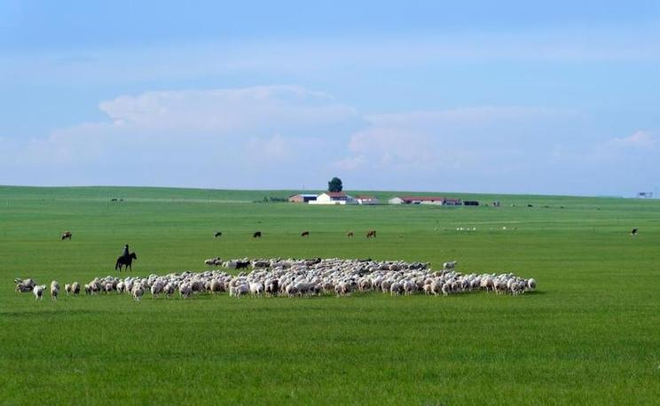 內(nèi)蒙古錫林郭勒盟烏拉蓋管理局境內(nèi)的草原上,牧民在放羊。新華社記者賈立君 攝