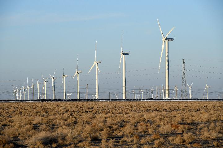 中節(jié)能(甘肅)風(fēng)力發(fā)電有限公司玉門昌馬風(fēng)電場的風(fēng)機(jī)。新華社記者范培珅 攝