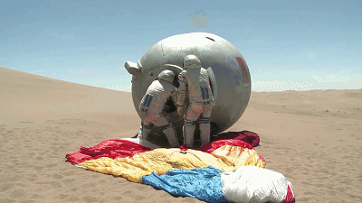 航天員改裝降落傘的引導(dǎo)傘來遮陰擋風(fēng)沙(資料圖)