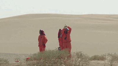 在被譽(yù)為“沙漠珠穆朗瑪峰”的巴丹吉林沙漠深處,身穿艙內(nèi)航天服的航天員以3人乘組形式,需在48小時(shí)內(nèi)模擬經(jīng)歷從返回艙著陸后航天員自主出艙、報(bào)告著陸位置、等待救援并利用現(xiàn)有物資進(jìn)行自救,直到被成功搜救的全過程。