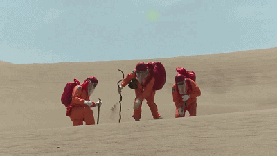 航天員相互扶持在沙漠中行進(jìn)(資料圖)