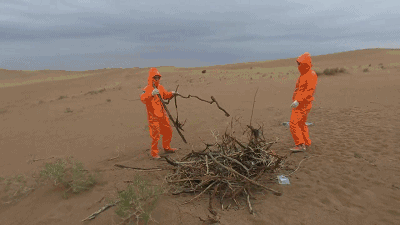 沙漠干旱少雨、空氣干燥。面對嚴(yán)酷的自然環(huán)境,航天員首先要使用救生電臺(tái)、衛(wèi)星定位儀、衛(wèi)星電話等進(jìn)行初期的求救聯(lián)絡(luò),然后察看四周地形,利用自然條件、所帶裝備和返回艙、降落傘等搭建遮陽、保溫的掩體,在沙漠里生起篝火、燒水、烹煮食物。