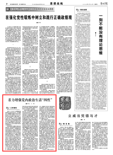 著力增強黨內(nèi)政治生活“四性”