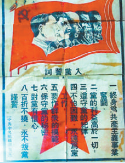 抗戰(zhàn)時(shí)期中共晉察冀中央局制作的入黨誓詞印刷品。