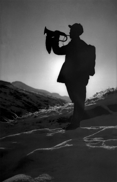 這是抗日戰(zhàn)爭時期晉察冀邊區(qū)的八路軍司號員(資料照片)。