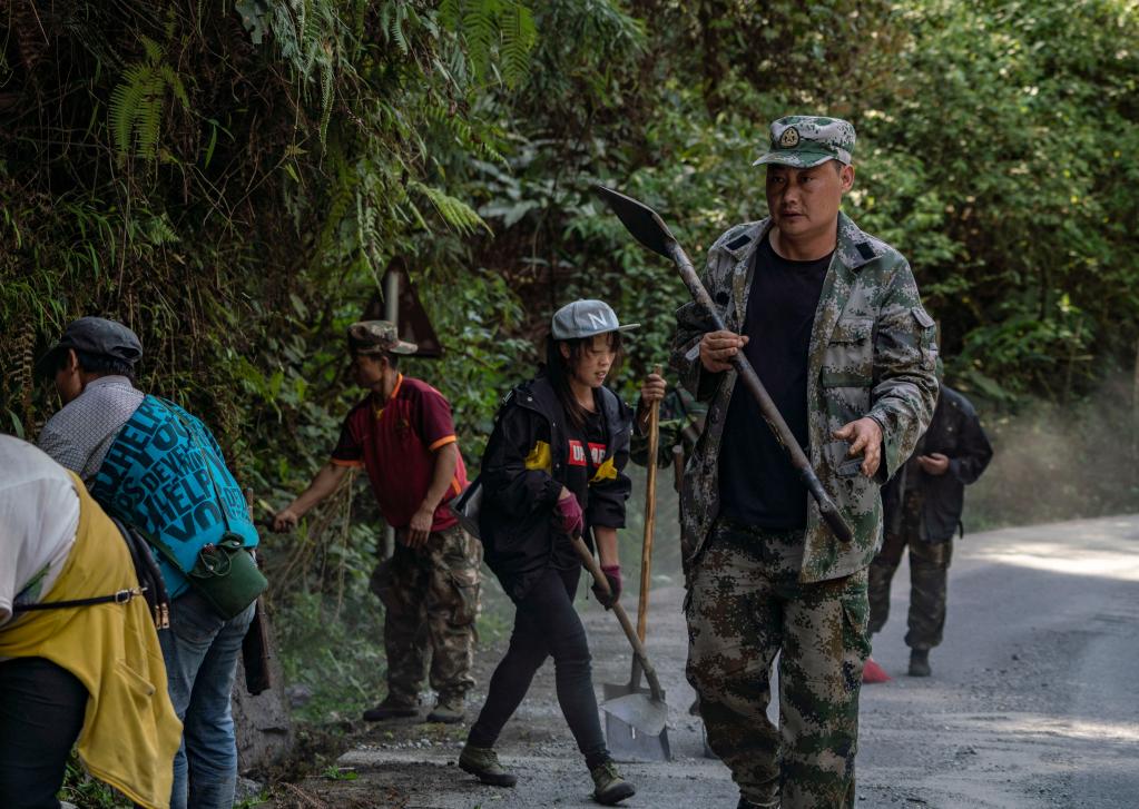 在云南貢山縣獨龍江鄉(xiāng)巴坡村,王世榮(右一)帶領(lǐng)鄉(xiāng)親們一起勞動(資料照片,2019年4月25日攝)。新華社記者江文耀攝
