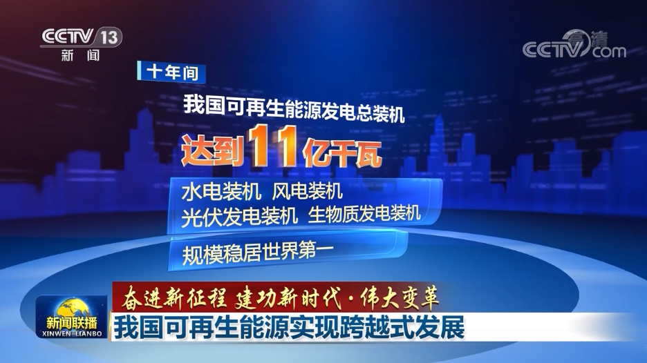 央視網(wǎng)消息(新聞聯(lián)播):習(xí)近平總書記指出,要把促進(jìn)新能源和清潔能源發(fā)展放在更加突出的位置。黨的十八大以來,我國(guó)以水電、風(fēng)電、光伏發(fā)電為代表的可再生能源實(shí)現(xiàn)跨越式發(fā)展,裝機(jī)規(guī)模穩(wěn)居全球首位,發(fā)電量占比穩(wěn)步提升,能源結(jié)構(gòu)調(diào)整和減碳效果逐步顯現(xiàn)。