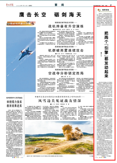 創(chuàng)新是一個(gè)國(guó)家發(fā)展進(jìn)步的靈魂,也是一支軍隊(duì)發(fā)展進(jìn)步的靈魂。習(xí)主席高度重視創(chuàng)新,明確提出“建設(shè)創(chuàng)新型人民軍隊(duì)”,反復(fù)強(qiáng)調(diào)“更加注重創(chuàng)新驅(qū)動(dòng)”。軍事創(chuàng)新是個(gè)系統(tǒng)工程,理論創(chuàng)新與技術(shù)創(chuàng)新是軍事創(chuàng)新的雙引擎,兩個(gè)引擎一起驅(qū)動(dòng)才能協(xié)調(diào)發(fā)展、行穩(wěn)致遠(yuǎn)。推動(dòng)軍事創(chuàng)新、建設(shè)創(chuàng)新型人民軍隊(duì),就要在理技融合上下功夫,讓理論創(chuàng)新和技術(shù)創(chuàng)新形成合力。
