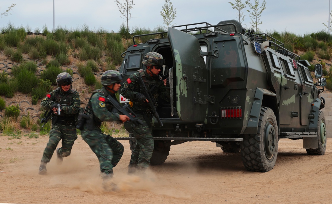武警北京總隊(duì)機(jī)動(dòng)第一支隊(duì)組織特戰(zhàn)隊(duì)員開展小組戰(zhàn)術(shù)訓(xùn)練(6月7日攝)。新華社發(fā)(李超 攝)