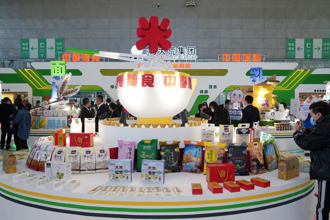 在第三屆中國·黑龍江國際大米節(jié)現(xiàn)場,參觀者在北大荒集團展區(qū)了解情況(2020年10月19日攝)。新華社記者 王建威 攝