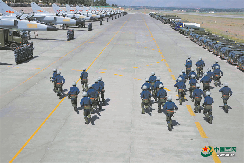 空軍航空兵某旅官兵奔向戰(zhàn)位。王建朝 攝