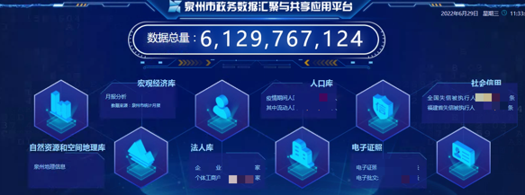 為加強(qiáng)數(shù)字政府建設(shè),釋放數(shù)據(jù)要素潛力,拓展數(shù)據(jù)應(yīng)用新場(chǎng)景,泉州積極推進(jìn)政務(wù)數(shù)據(jù)匯聚共享,建設(shè)政務(wù)數(shù)據(jù)匯聚與共享應(yīng)用平臺(tái),推動(dòng)市縣兩級(jí)351套信息系統(tǒng)與平臺(tái)實(shí)現(xiàn)數(shù)據(jù)對(duì)接,數(shù)據(jù)匯聚數(shù)據(jù)量達(dá)61億條,為全市各級(jí)各部門提供數(shù)據(jù)批量交換服務(wù)3000多項(xiàng),發(fā)布身份證、養(yǎng)老保險(xiǎn)、社保、醫(yī)保等服務(wù)接口300多個(gè),支持市縣兩級(jí)部門在線調(diào)用、數(shù)據(jù)共享和業(yè)務(wù)協(xié)同服務(wù),數(shù)據(jù)匯聚量在地市排名位列第一。著力構(gòu)建政務(wù)大數(shù)據(jù)資源體系,初步建成人口庫(kù)、法人庫(kù)、電子證照庫(kù)、社會(huì)信用信息等6大基礎(chǔ)主題數(shù)據(jù)庫(kù)及疫情防控、營(yíng)商服務(wù)、交通服務(wù)等專題數(shù)據(jù)庫(kù),全市“6+N”政務(wù)大數(shù)據(jù)資源中心正逐步形成。大力推動(dòng)公共數(shù)據(jù)共享開放,梳理出三批公共數(shù)據(jù)資源目錄清單共208張數(shù)據(jù)表、7.1億條數(shù)據(jù),公開數(shù)據(jù)列全省地級(jí)市第一名。
