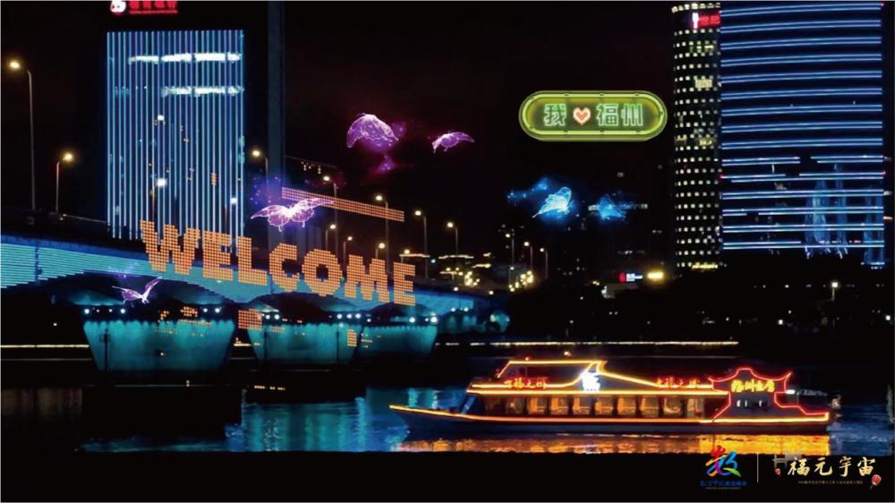 數(shù)字交互之夜是以“福元宇宙是基于人人都可構(gòu)筑的愿景”為核心思想,選擇福州閩江兩岸以及會展島的特色三處典型區(qū)域,展開的一次“R真實(shí)場景+AR技術(shù)”數(shù)字燈光秀。數(shù)字交互之夜還融入中國文化、科技及“龍、魚”、展會吉祥物等形象,以構(gòu)建數(shù)字世界下的人類新家園為核心,秉承大氣、精彩、可持續(xù)為創(chuàng)作原則,立足展現(xiàn)數(shù)字中國的科技魅力。