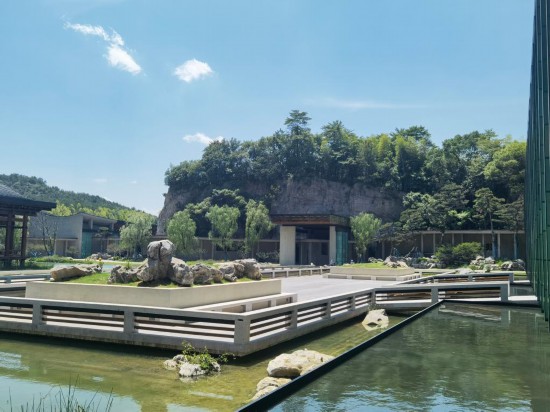 杭州國家版本館于2020年4月奠基,總建筑面積10.31萬平方米,建有主書房、南書房、文潤閣、山體庫房、附屬用房等13個單體建筑,各單體建筑之間通過具備展覽功能的寬大展廊相連接,構(gòu)成互通便利的建筑群體,引自良渚港的流水,在其間或停蓄成池,或清流激湍。