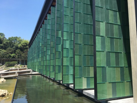 龍泉青瓷在宋代進入鼎盛時期,杭州國家版本館多處都使用了龍泉青瓷屏扇。王澍說,屏扇的靈感來自于南宋畫家馬遠(yuǎn)《華燈侍宴圖》中的小方格屏扇,青瓷的材質(zhì)則是因為“文潤閣”中的“潤”令他想到了“君子溫潤如玉”,而青瓷正因色澤如玉而受人喜愛。
