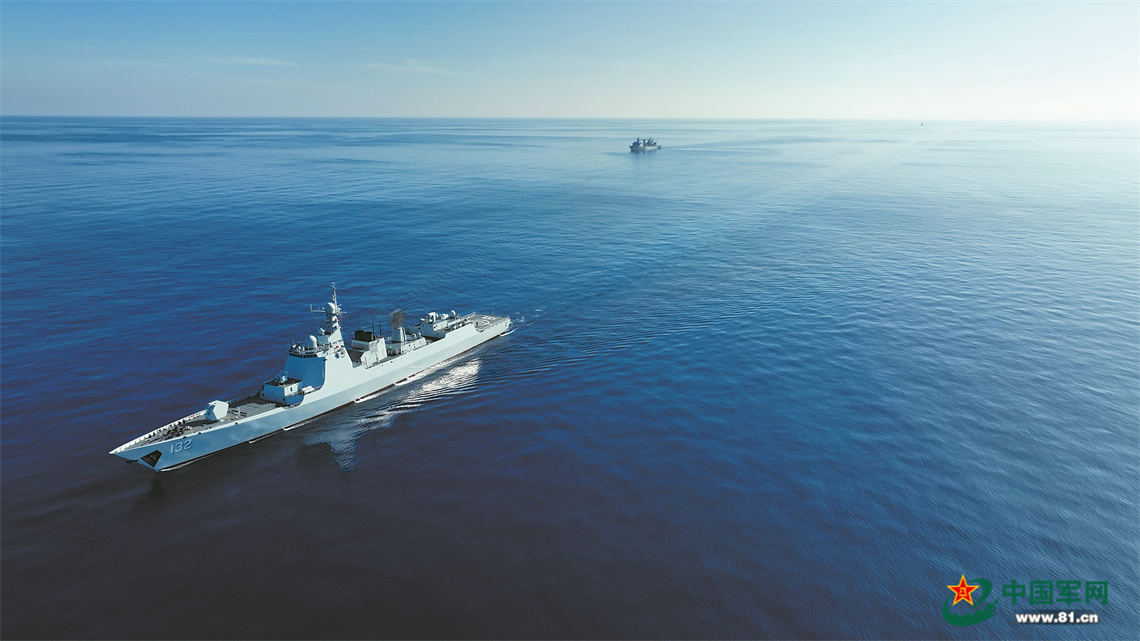 編隊(duì)艦艇向訓(xùn)練海域航渡。