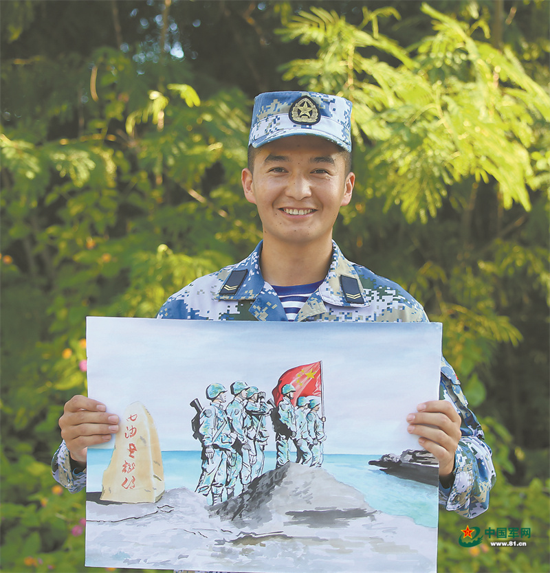 生長在新疆的我,從小就向往大海,夢想著成為一名海軍戰(zhàn)士。幸運的是,2年前,這個夢想成真了。然而上島后,理想與現(xiàn)實的差距曾讓我一度感到迷茫。直到有一次與在島上待了10余年的軍醫(yī)聊天,我才改變了對守島的認(rèn)識,開始懂得了堅守的意義。也是從那時開始,我發(fā)揮特長,用畫筆記錄西沙的壯麗風(fēng)光、守島官兵的訓(xùn)練生活。