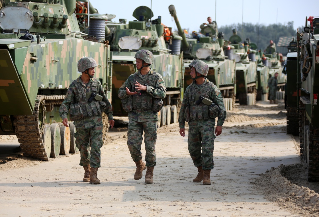 第73集團(tuán)軍某旅合成營營長陳松科學(xué)研判,在多層次火力支援下,指揮兩棲裝甲突擊力量對“敵”目標(biāo)實(shí)施摧毀,兵力梯次推進(jìn),成功控制灘頭要地。