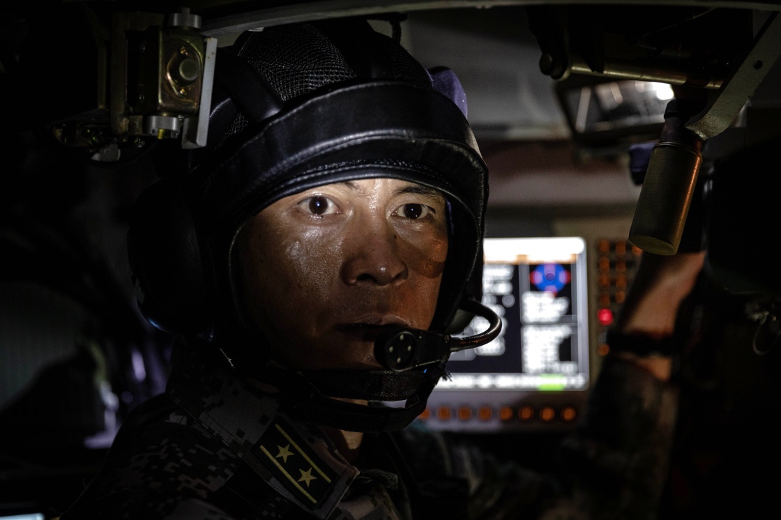 第73集團(tuán)軍某旅合成營營長陳松在兩棲裝甲車內(nèi)進(jìn)行訓(xùn)練(2022年6月18日攝)。新華社發(fā)(謝文劍攝)