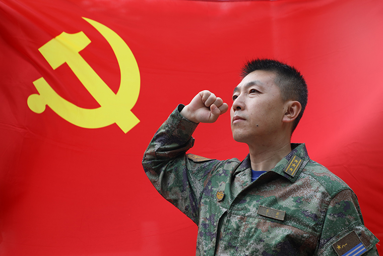 面對(duì)黨旗宣誓(梁昌倬 攝)