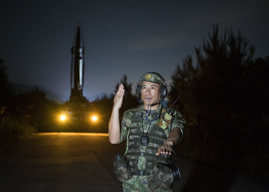 火箭軍某旅發(fā)射一營班長、一級軍士長何賢達(dá)指揮發(fā)射操作訓(xùn)練(2022年6月25日攝)。新華社發(fā)(劉明松攝)