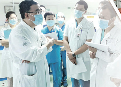 周飛虎與醫(yī)護(hù)人員討論治療方案。