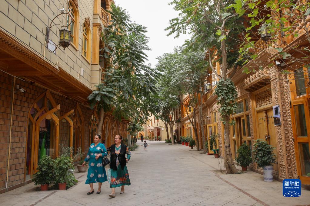 這是在新疆和田市拍攝的由北京市援疆資金支持改造的團(tuán)城(2019年8月1日攝)。