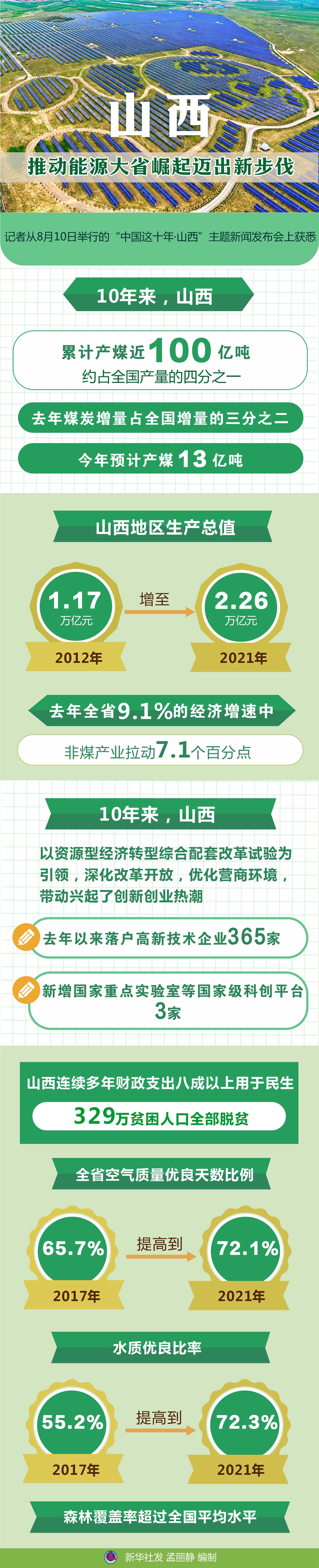 10年來,山西地區(qū)生產(chǎn)總值從2012年的1.17萬億元增至2021年的2.26萬億元。做大總量的同時,山西一手抓煤、電、鋼、焦等傳統(tǒng)優(yōu)勢產(chǎn)業(yè)改造提升,一手抓高端裝備制造、新材料、大數(shù)據(jù)等戰(zhàn)略性新興產(chǎn)業(yè)發(fā)展壯大。去年全省9.1%的經(jīng)濟增速中,非煤產(chǎn)業(yè)拉動7.1個百分點。