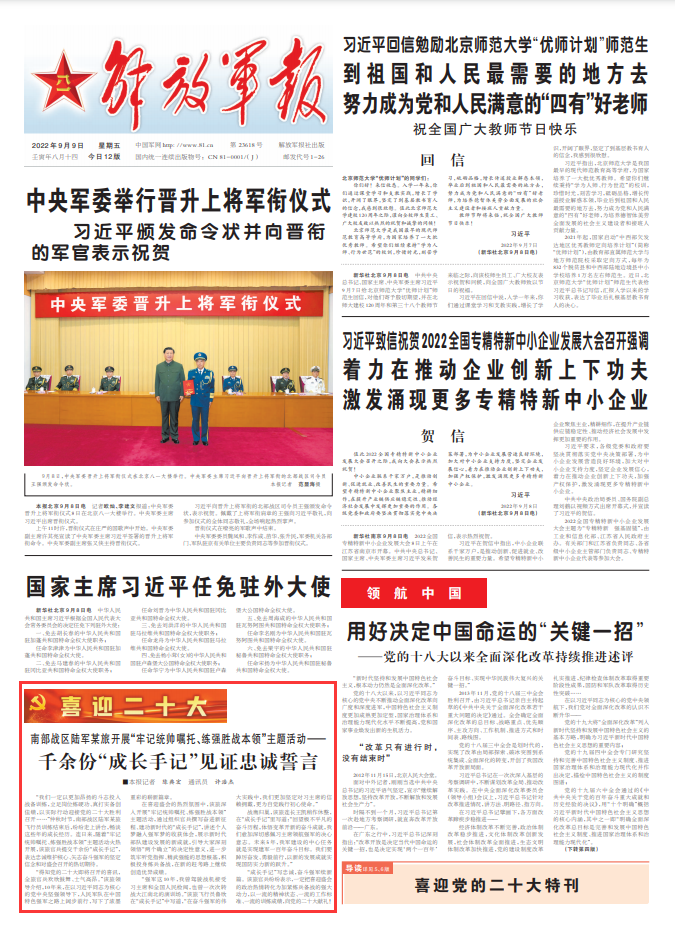 “得知黨的二十大即將召開的喜訊,全旅官兵歡欣鼓舞、士氣高昂?!痹撀妙I導介紹,10年來,在以習近平同志為核心的黨中央堅強領導下,人民軍隊在中國特色強軍之路上闊步前行,寫下了濃墨重彩的嶄新篇章。