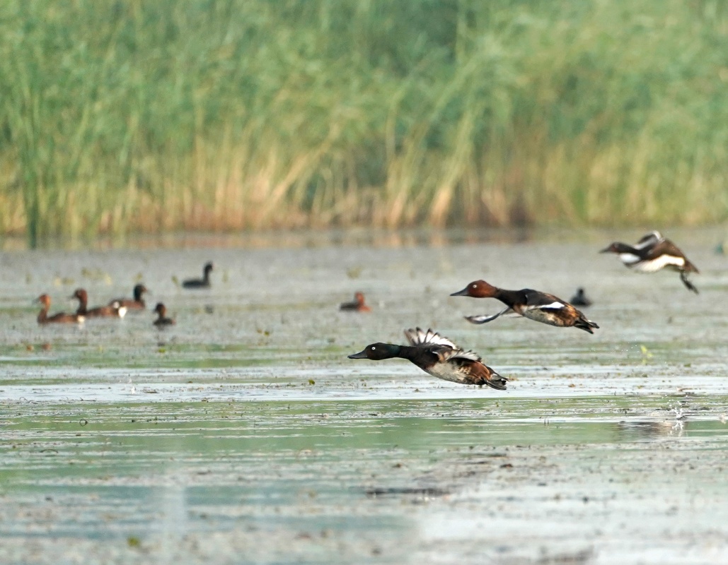 夏日的白洋淀,碧波蕩漾,荷紅葦綠。遼闊的水面上,一群活潑可愛的青頭潛鴨幼鳥跟隨“父母”在蘆葦叢中穿梭。這意味著,世界極度瀕危物種青頭潛鴨將白洋淀作為了繁殖地。