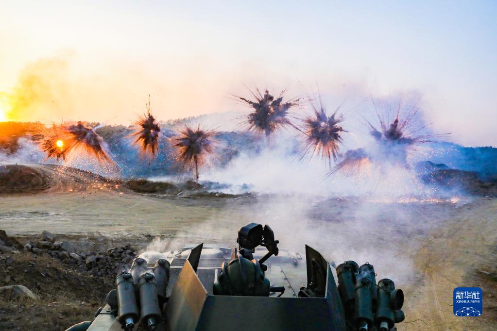 陸軍第72集團軍某旅組織某型輪式裝甲輸送車進行車載煙幕實彈射擊訓(xùn)練(2021年1月4日攝)。新華社發(fā)(張毛 攝)