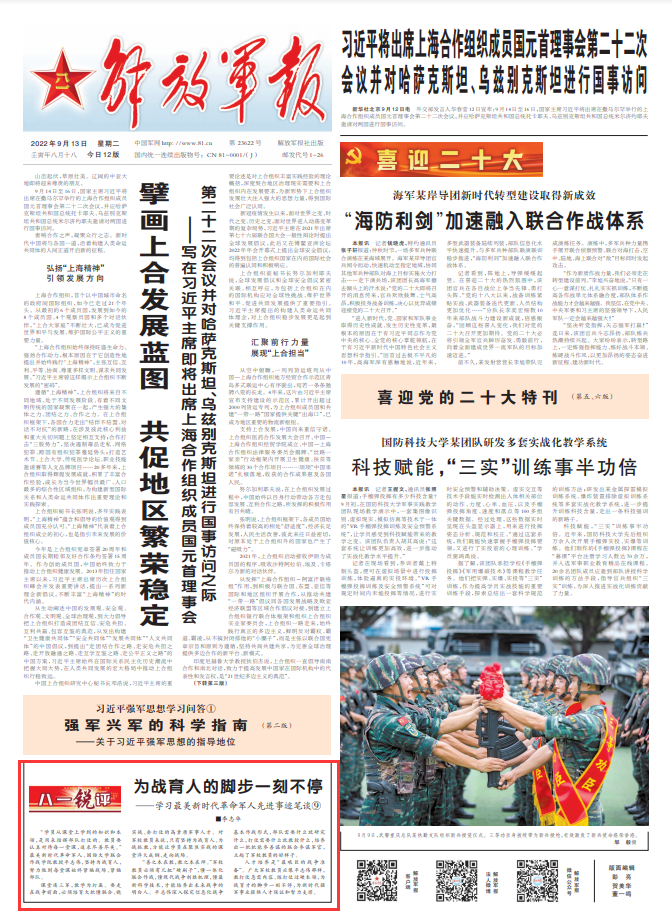 人才培養(yǎng)是“最艱巨的戰(zhàn)爭(zhēng)準(zhǔn)備”。廣大軍校教員應(yīng)像平志偉那樣,教打仗急需內(nèi)容、練打仗過硬本領(lǐng),為戰(zhàn)育才的腳步一刻不停,為新時(shí)代強(qiáng)軍事業(yè)提供人才保證和智力支撐。