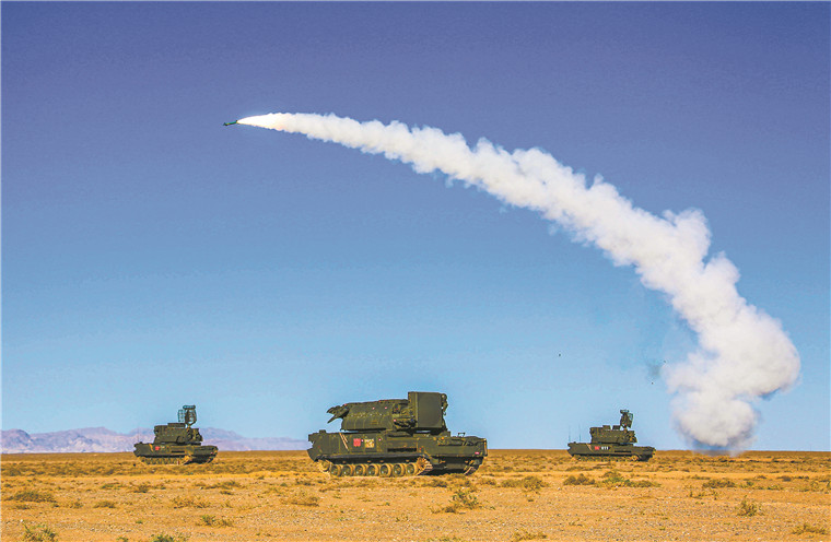 隨著軍事法規(guī)制度體系不斷完善,各部隊落實依法治訓(xùn)從嚴(yán)治訓(xùn)要求,依照各項法規(guī)制度抓訓(xùn)練,努力端正訓(xùn)風(fēng)演風(fēng)考風(fēng),不斷錘煉過硬打贏本領(lǐng)。圖為陸軍某防空旅在大漠戈壁開展空地攻防演練。王文周攝