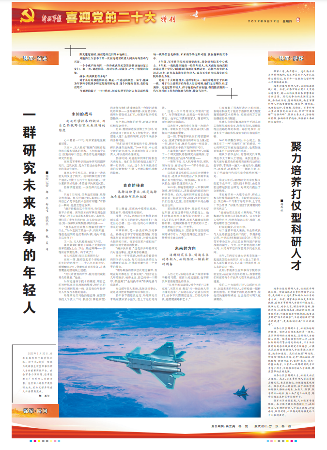 黨的二十大即將召開,這群年輕人一如往常地奔忙于科研一線。對于馬上就要開啟的重大歷史時刻,他們無比期待、壯志滿懷。走近這群年輕人,探尋他們的青春軌跡,我們能讀懂新一代軍事科研工作者的視野與情懷、使命與擔當。