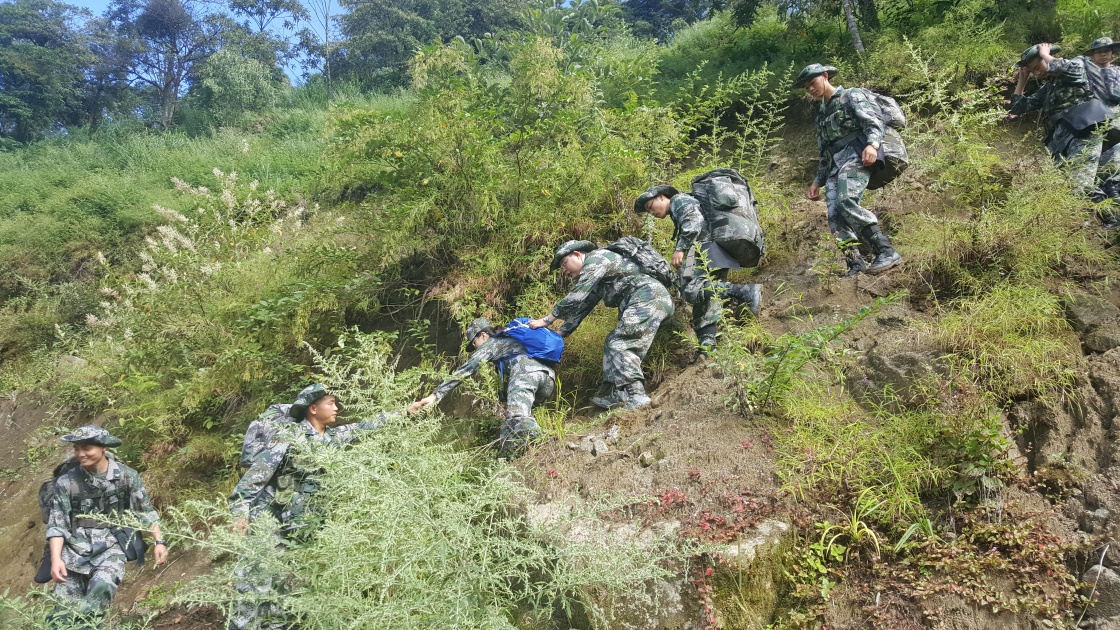軍事科學院系統(tǒng)工程研究院某研究所科研人員在西藏墨脫與邊防戰(zhàn)士一起參加徒步巡邏,實地了解軍需保障需求(2017年9月16日攝)。新華社發(fā)(謝先達 攝)