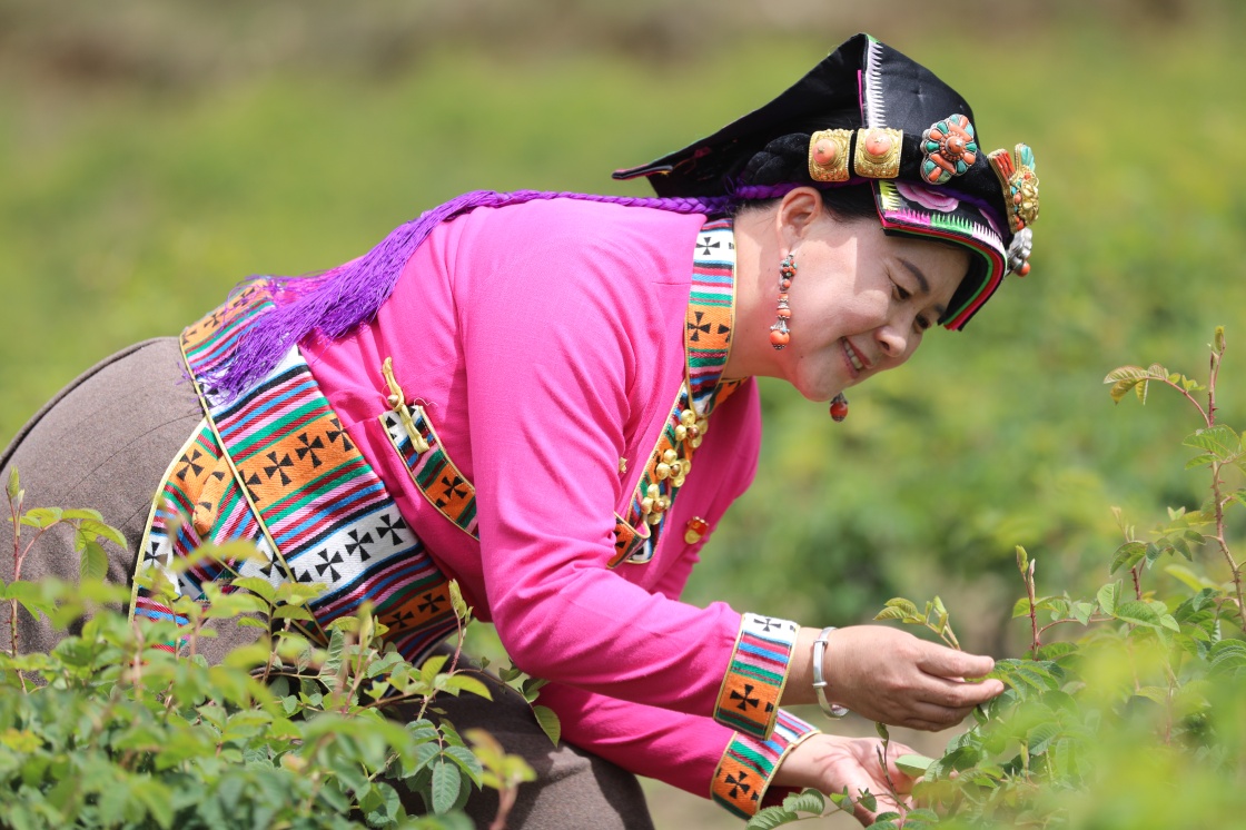 9月25日,陳望慧在四川阿壩州小金縣新橋鄉(xiāng)共和村的玫瑰園中。新華社記者 劉瓊 攝