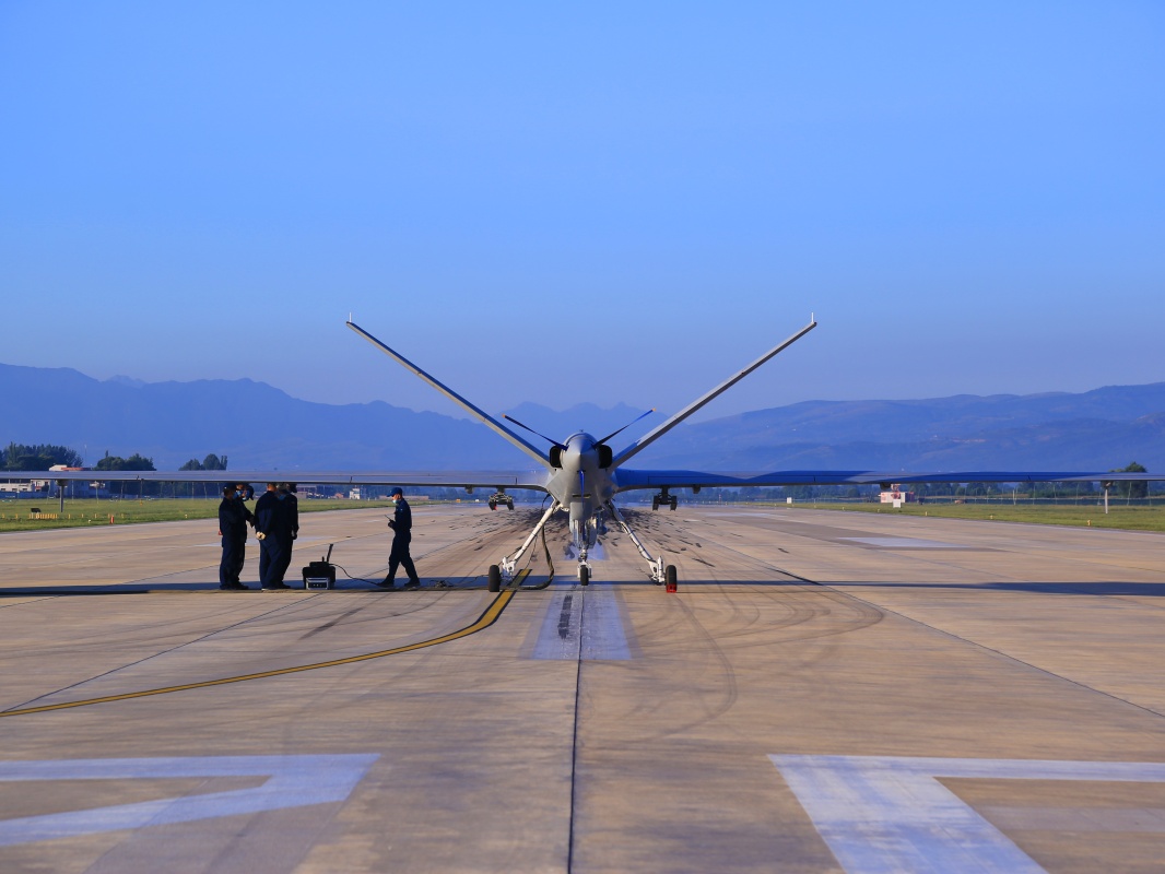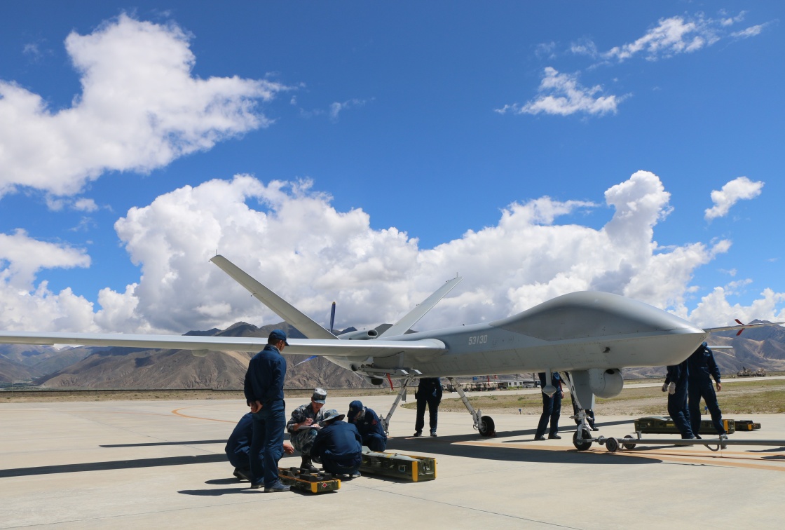 空軍航空兵某團(tuán)機(jī)務(wù)人員進(jìn)行無人機(jī)起飛前準(zhǔn)備(2022年8月7日攝)。新華社發(fā)(劉載譽(yù) 攝)