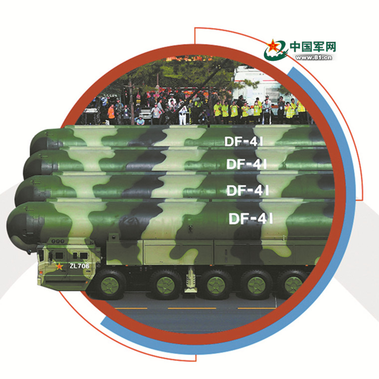 2019年10月1日,在慶祝新中國(guó)成立70周年閱兵式上,東風(fēng)-41核導(dǎo)彈壓軸出場(chǎng)。東風(fēng)-41核導(dǎo)彈,是我國(guó)戰(zhàn)略核力量的重要支撐,也是維護(hù)和平、捍衛(wèi)和平的堅(jiān)強(qiáng)盾牌。