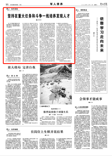 強(qiáng)軍之道,要在得人。當(dāng)前,在向第二個(gè)百年奮斗目標(biāo)進(jìn)軍的新征程上,面對(duì)世界百年未有之大變局加速演變、世界軍事競爭日趨激烈的現(xiàn)實(shí),我們比歷史上任何時(shí)期都更加渴求人才。新的形勢任務(wù)和軍事領(lǐng)域各方面發(fā)生的深刻變革,要求我們必須加快軍事人員現(xiàn)代化,更好發(fā)揮人才對(duì)強(qiáng)軍事業(yè)的引領(lǐng)和支撐作用。人才成長規(guī)律表明,越是重大任務(wù),越是斗爭一線,越能考驗(yàn)人、鍛煉人、培養(yǎng)人、成就人。一名干部能不能擔(dān)當(dāng)大任、成為棟梁之才,重大任務(wù)和斗爭一線是“試金石”,也是培養(yǎng)和造就人才的“磨刀石”。堅(jiān)持在重大任務(wù)和斗爭一線培養(yǎng)發(fā)現(xiàn)人才,才能讓更多優(yōu)秀人才經(jīng)風(fēng)雨、見世面,壯筋骨、長才干,從而鍛造出一大批能夠擔(dān)當(dāng)強(qiáng)軍重任的高素質(zhì)、專業(yè)化新型軍事人才。